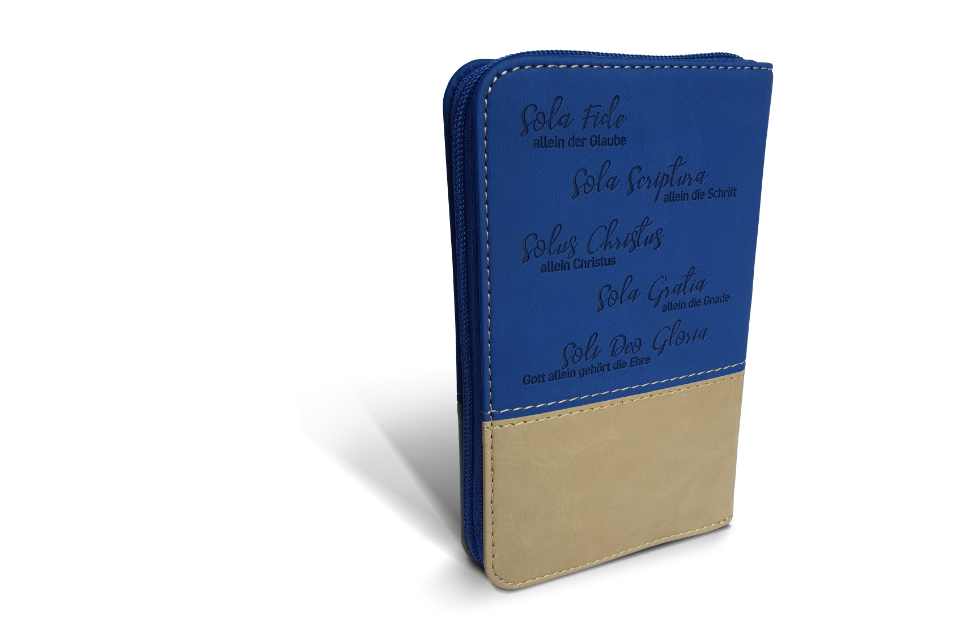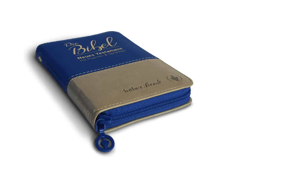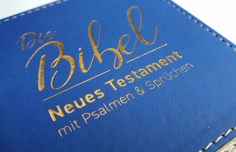 Die Herstellung des Umschlags ist reine Handarbeit, die Materialien in gewohnt hochwertiger Qualität. Alle Schriften sind geprägt – teilweise mit edler Goldfolie wie beispielsweise das "Die Bibel" auf dem Cover. Die Seiten haben einen Goldschnitt und es gibt ein farblich passendes Lesebändchen. Außerdem hat diese Sonderausgabe einen Reißverschluss, wodurch der kostbare Inhalt immer gut geschützt bleibt.